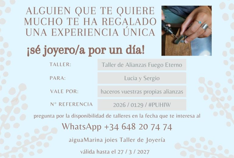 El Taller de Alianzas en Pareja es una experiencia única en la que crearéis vuestros anillos trabajando el metal con vuestras propias manos.